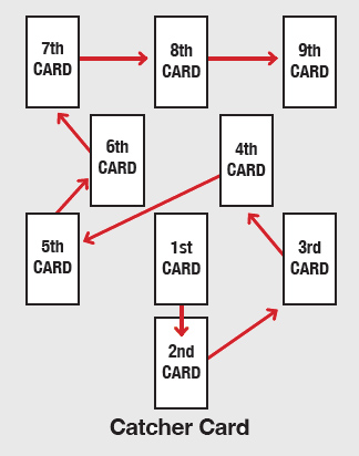 The home team takes the field and shuffles the defensive stack (see rule 1 above). Holding it face-down, this player turns over the top nine cards one at a time, and places them on the field, like this: